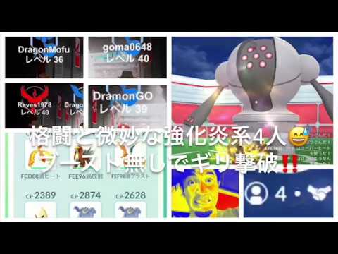 ポケモンGO レジスチル ブースト無し‼️炎系強化微妙4人でギリギリ‼️